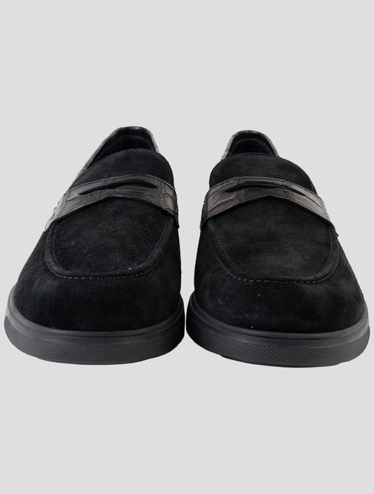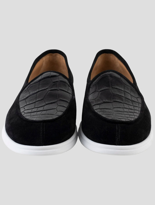 Kiton Handmade Italian Crocodile Suede Leather Loafers Black