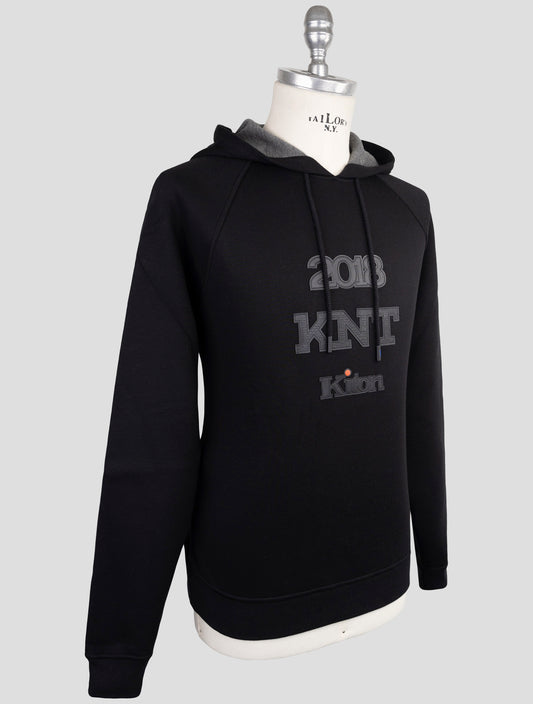 Kiton KNT Black Viscose Elastane Hoodie Sweater - Italian Made