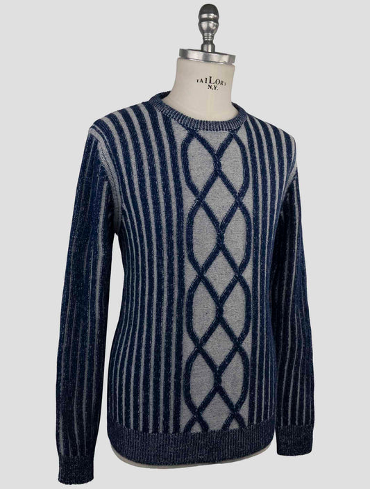 Kiton KNT Blue Virgin Wool Cashmere Textured Crewneck Sweater