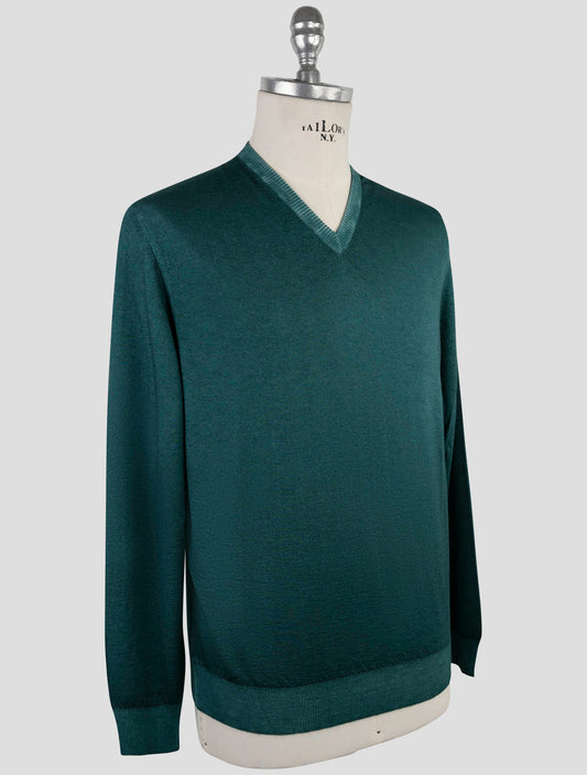 Pull V-Neck en Cachemire et Soie Vert Kiton