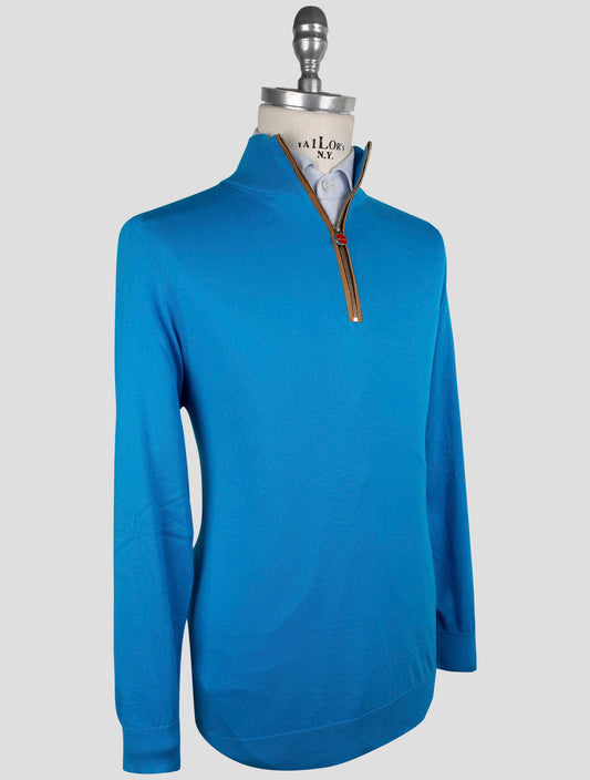 Pull en Coton Bleu Clair à Zip Demi Kiton