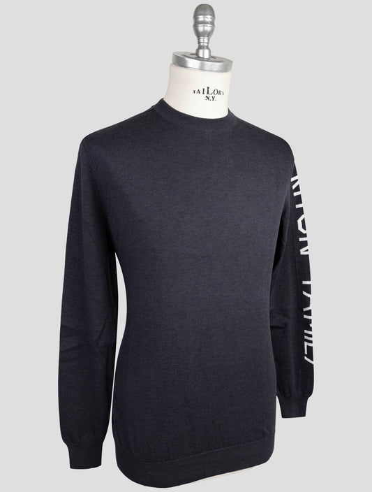 Kiton Gray Cotton Crewneck Sweater - Italian Handmade Men's