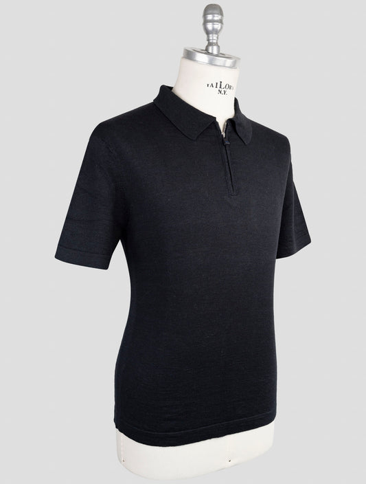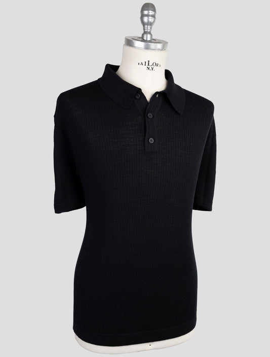 Kiton KNT Wool Silk Polo Black - Handmade Italian Knitwear