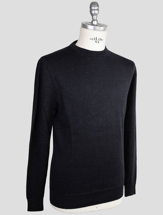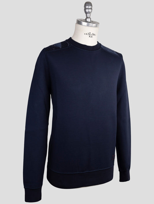 Kiton KNT Cotton Crewneck Sweater Dark Blue Handmade Italy