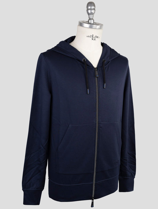 Kiton KNT Blue Viscose Full Zip Hoodie - Handmade Italian Luxury