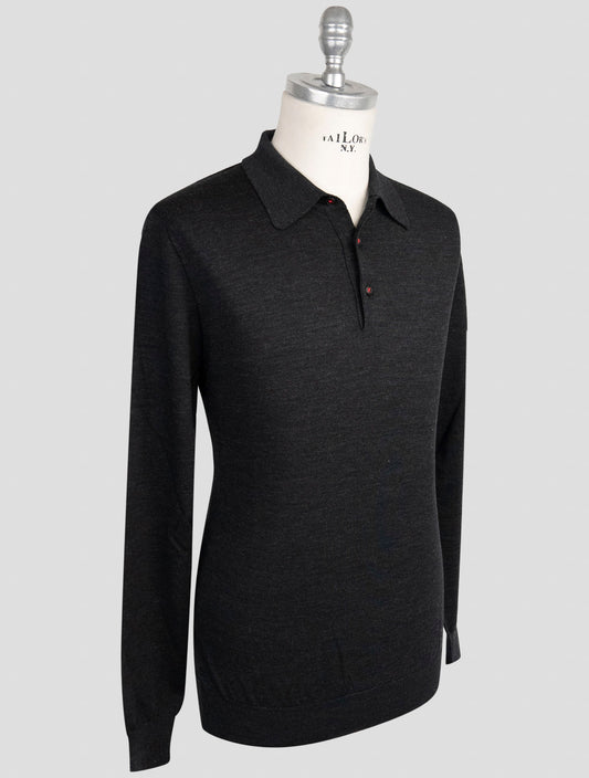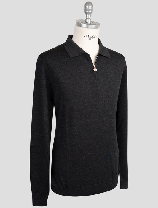 Kiton Dark Gray 100% Wool Polo Sweater - Handmade Italian