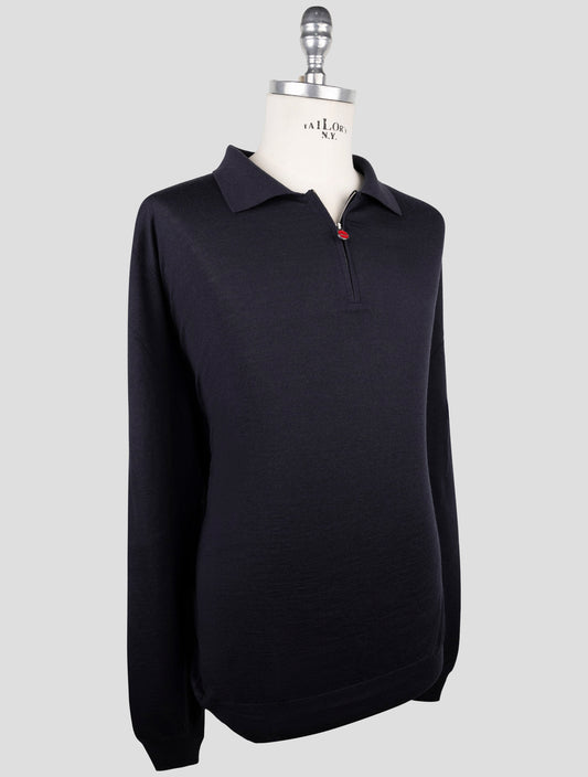 Kiton Navy Blue Wool Half-Zip Polo Sweater - Italian Handmade