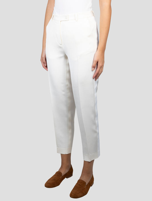 Kiton White Cotton Elastane Pants - Handmade Italian Women's