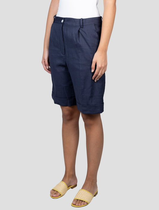 Kiton Women's Blue Linen Viscose Short Pants - Italian Handmade