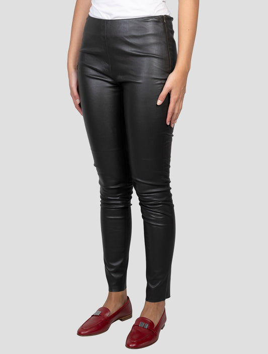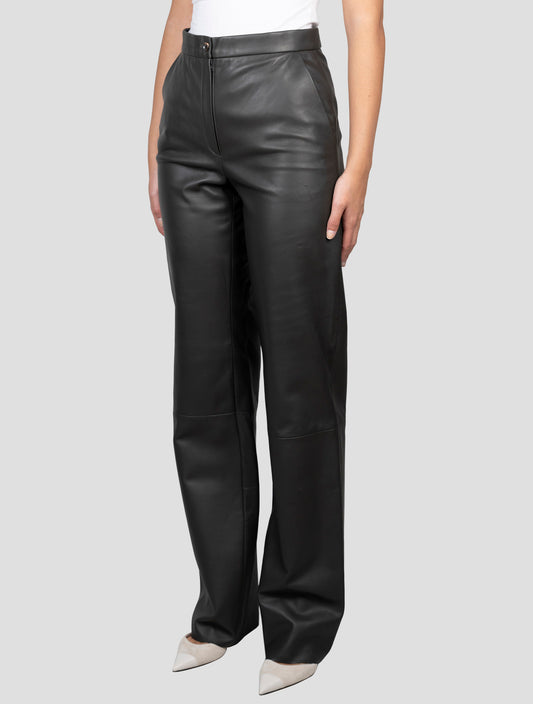 Kiton Women's Premium Black Leather Pants - Italian Handmade