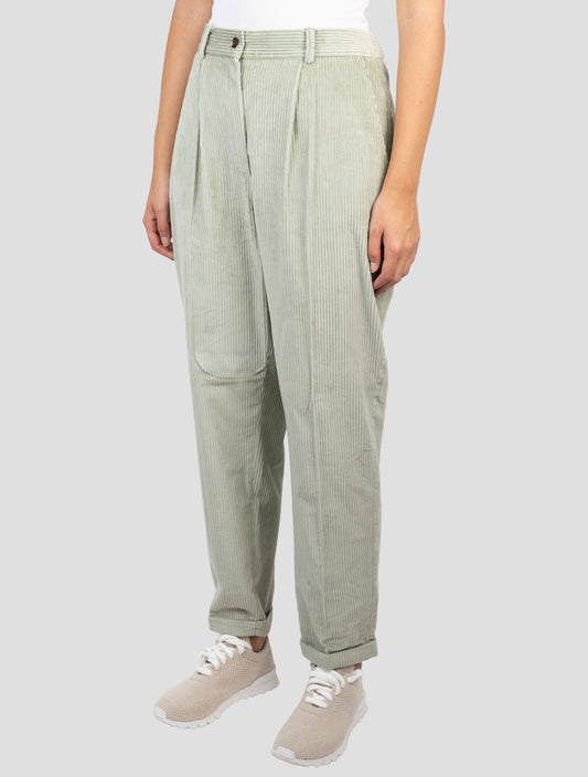 Kiton Handcrafted Green Cotton Velvet Pants - Made in Italy