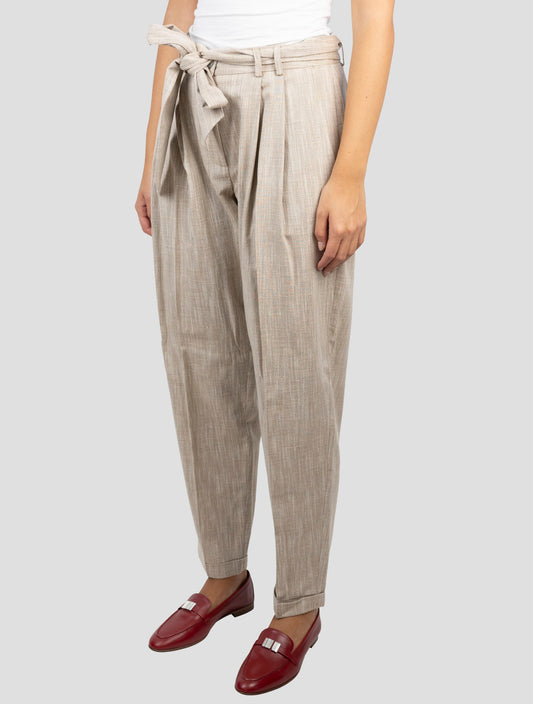 Kiton Women's Premium Brown Linen Pants - Handcrafted Italian