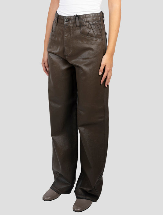 Kiton Handcrafted Brown Leather Pants - Italian Luxury Women's