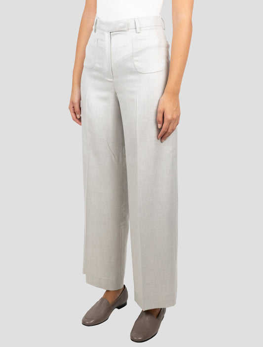 Kiton Handcrafted Beige Virgin Wool Silk Blend Women's Pants