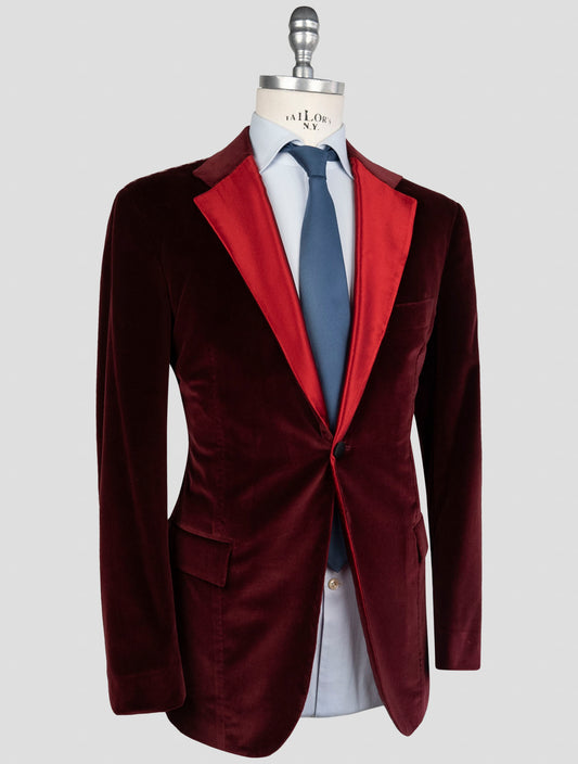 Kiton Burgundy Cotton Velvet Smoking Jacket - Italian Handmade