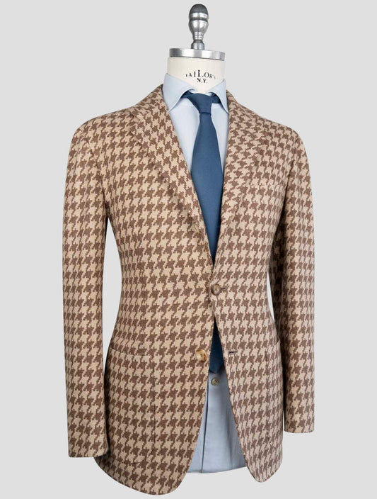 Kiton Brown Houndstooth Cashmere Blazer - 100% Italian Crafted