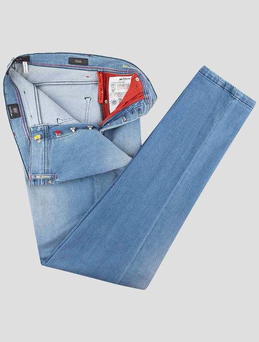 Kiton Handmade Italian Blue Cotton Elastane Slim Fit Denim Jeans