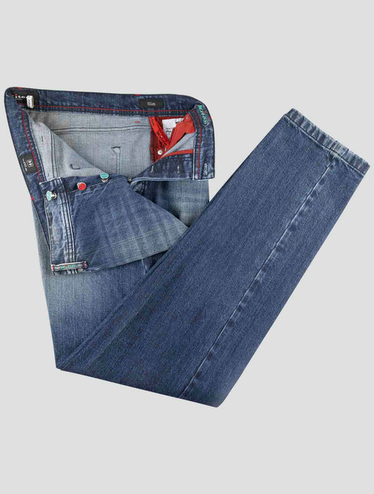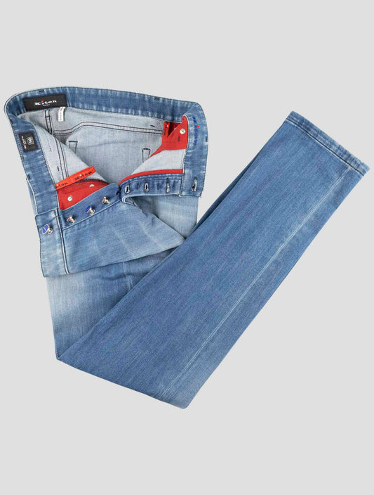 Kiton Italian Cotton Elastane Slim Fit Blue Denim Jeans Men