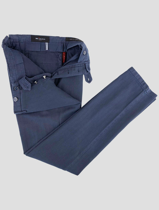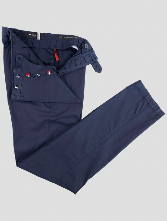 Kiton Blue Cotton Silk Elastane Pants - Premium Italian Handmade