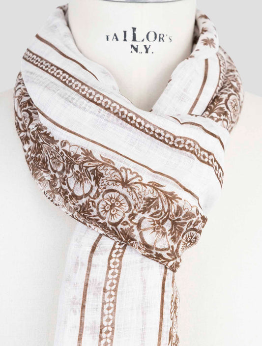 Kiton Handmade Italian Brown Linen Scarf - Floral Pattern Summer