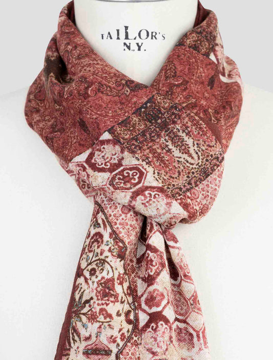 Kiton Pure Silk Scarf Multicolor Fantasy Pattern 45x200cm Italian