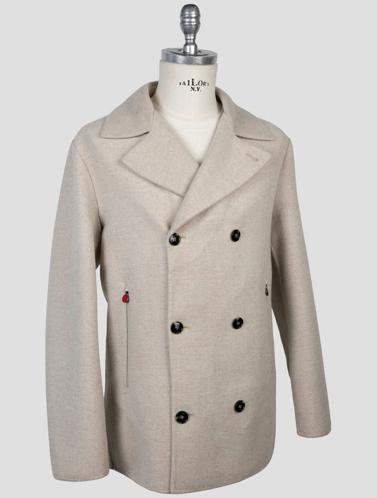 Kiton Beige Wool Cashmere Double-Breasted Coat Men's Italian