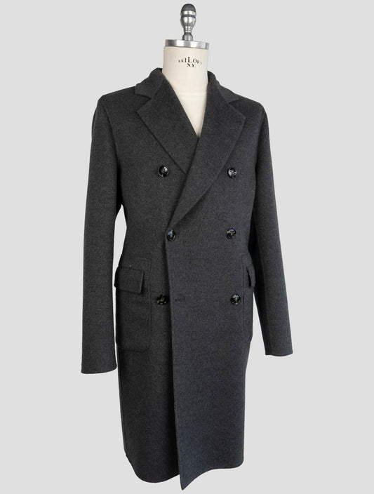 Kiton Premium Wool Cashmere Overcoat Gray Double-Breasted Italian
