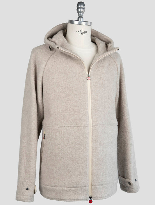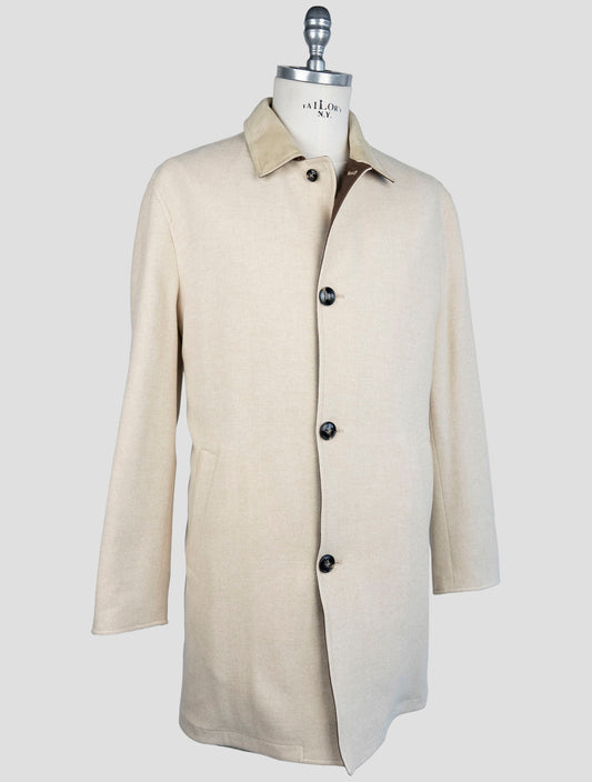 Kiton Beige Virgin Wool Silk Linen Reverse Coat Italian Luxury