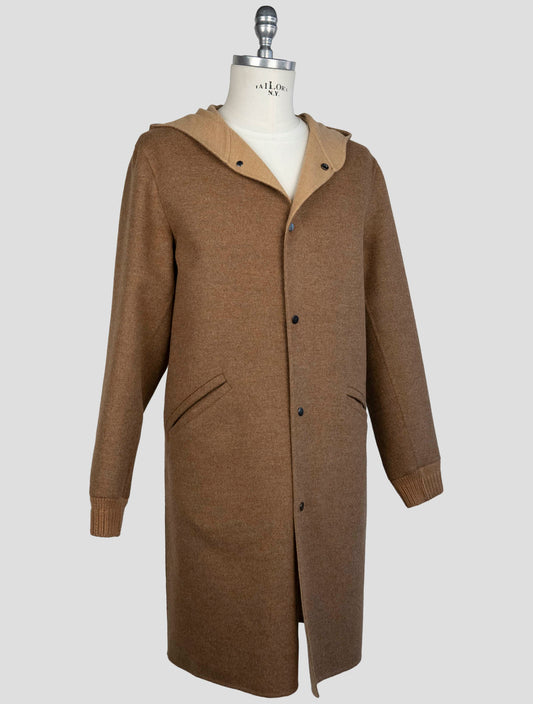 Kiton Reversible Virgin Wool Cashmere Coat Beige Brown Italian