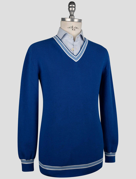 Синий хлопковый свитер с V-образным вырезом Kiton