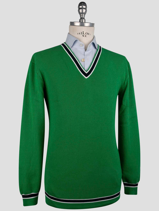 Свитер Kiton из зеленого хлопка с V-образным вырезом