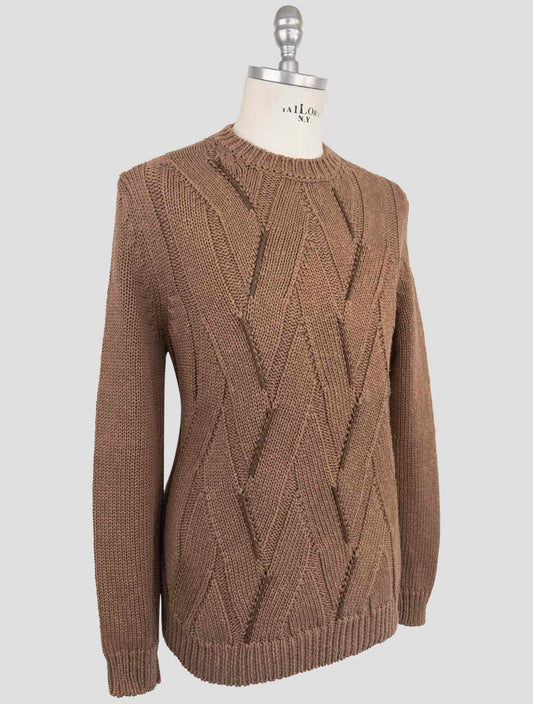 Kiton Brown Cotton Linen Crewneck Sweater Italian Handmade