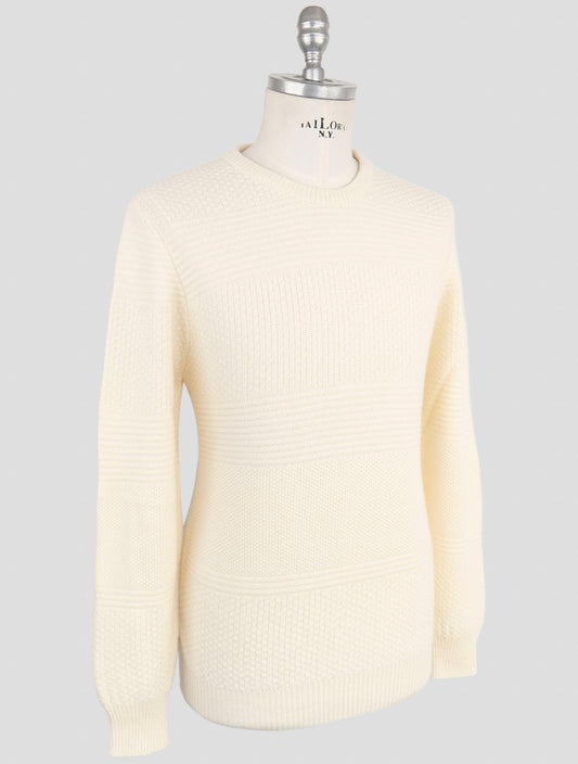 Kiton Pure Cashmere Crewneck Sweater White Handmade Italian Luxury