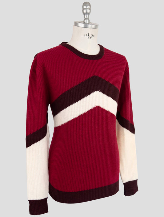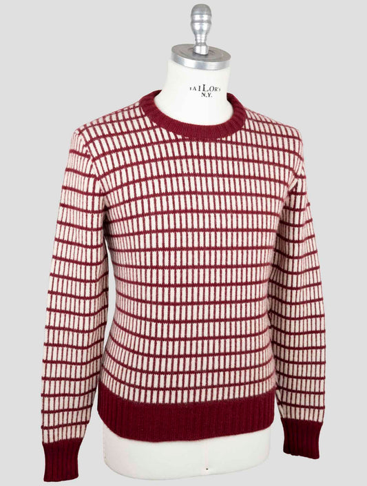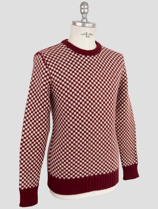 Kiton Handmade 100% Cashmere Crewneck Sweater Burgundy Geometric