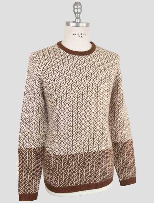 Kiton Premium Cashmere Geometric Crewneck Sweater Multicolor Italian
