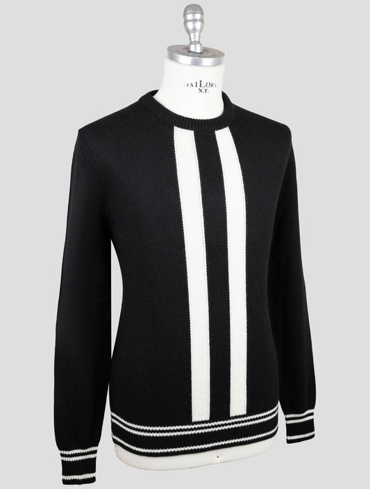 Kiton Premium Pure Cashmere Crewneck Sweater Men's Black White