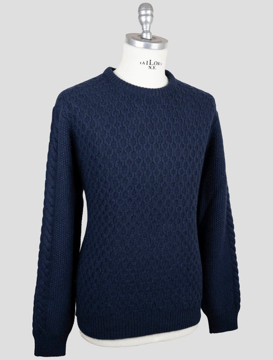 Kiton Pure Cashmere Blue Crewneck Sweater - Textured Handmade