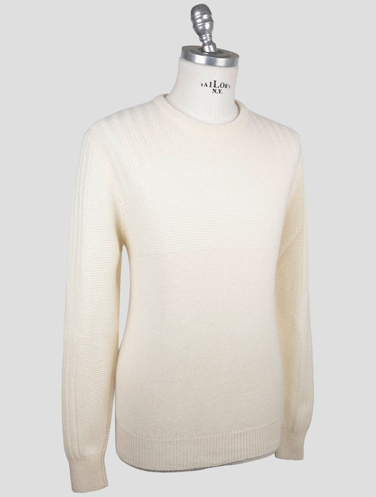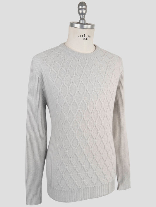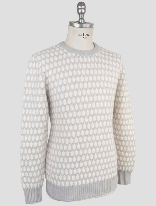 Kiton Premium Cashmere Crewneck Sweater White Gray Italian