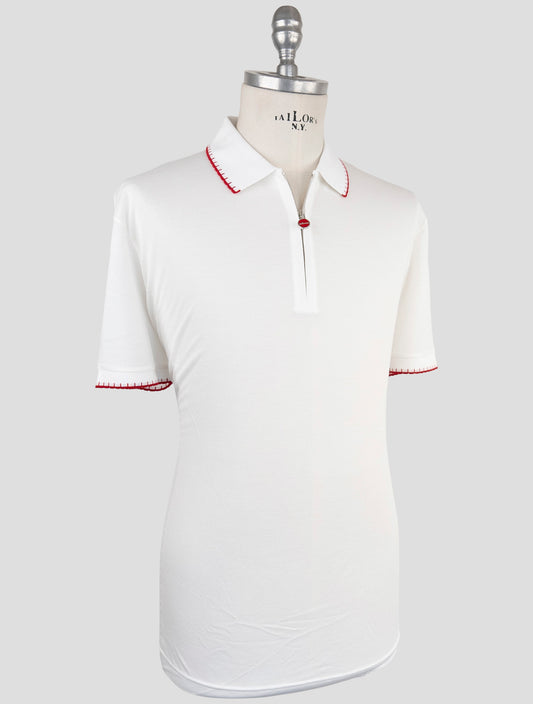 Kiton White Cotton Half-Zip Polo - Italian Handmade Premium