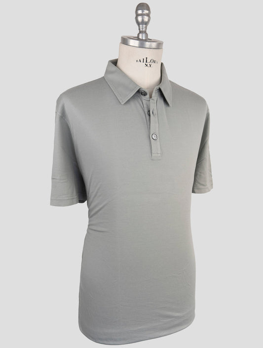 Kiton Gray Cotton Cashmere Polo - Handmade Italian Luxury Mens