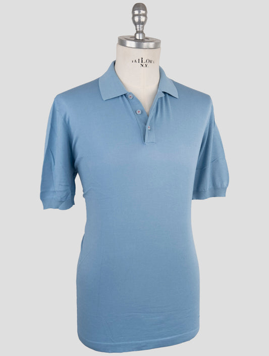 Kiton Pure Cotton Polo Shirt Light Blue Italian Handmade Men's