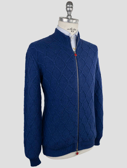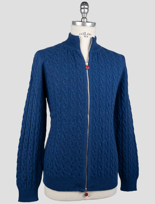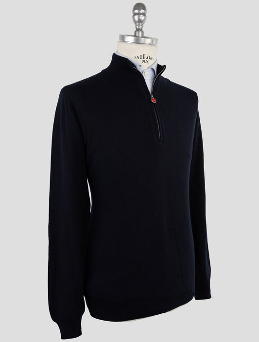 Kiton Premium Blue Cashmere Half-Zip Sweater Italian Made