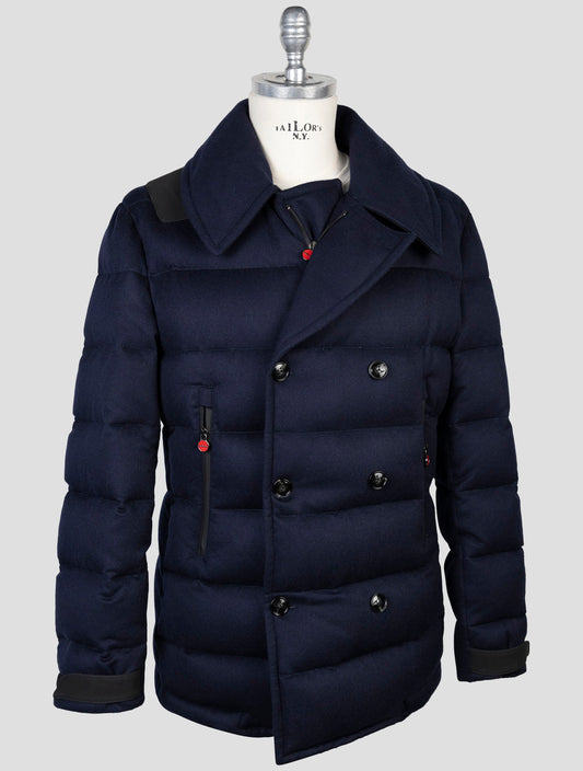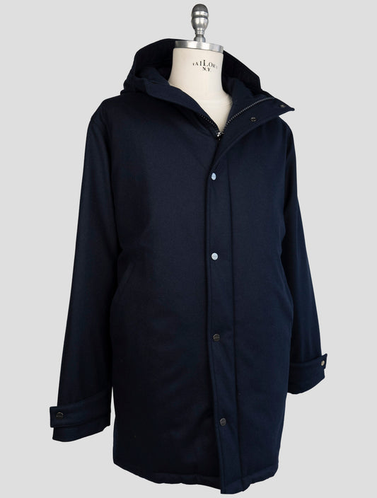 Kiton Blue Cashmere Polyamide Overcoat - Italian Handmade Winter