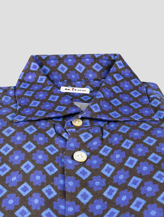 Kiton Handmade Blue Floral Cotton Dress Shirt - Italian Premium