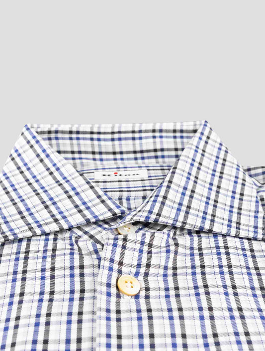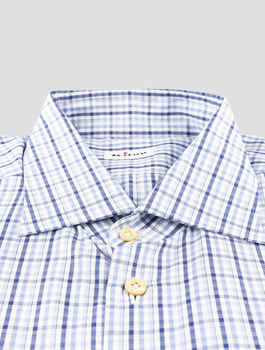 Kiton Blue Cotton Dress Shirt - Handmade Italian Plaids Checks