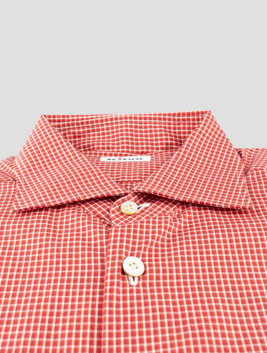 Kiton Red Cotton Dress Shirt - Handmade Italian Geometric