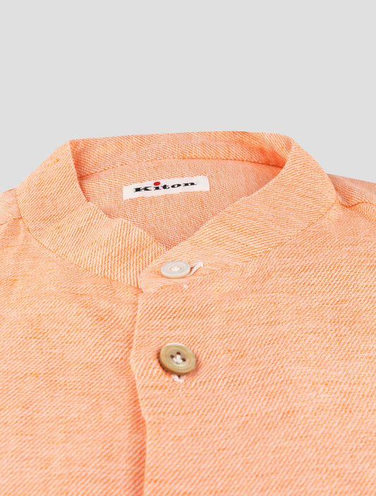 Kiton Cotton Linen Korean Collar Shirt Orange Handmade Regular Fit