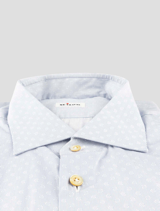Kiton Premium Cotton Dress Shirt Light Blue Geometric Pattern