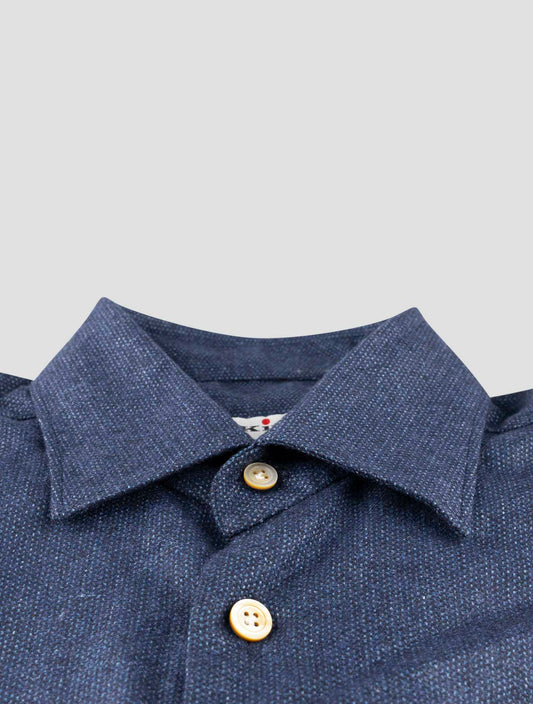Kiton Handmade Blue Viscose Wool Men's Shirt - Italian Regular Fit