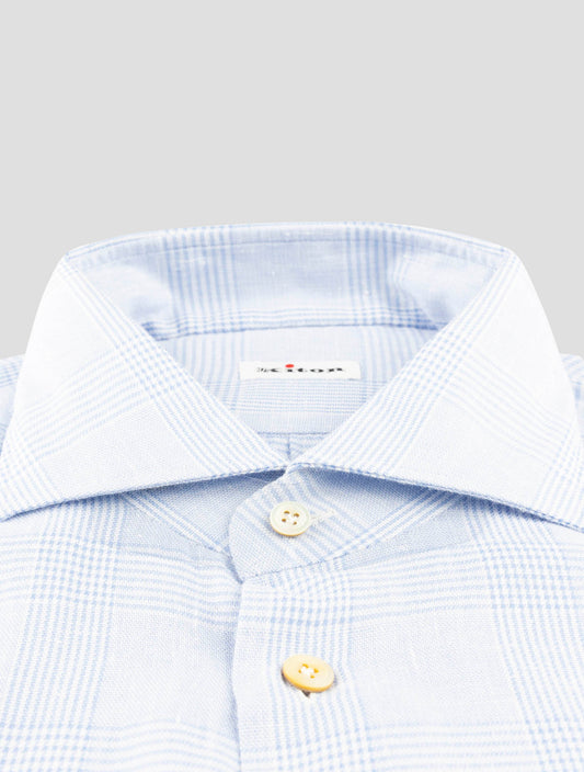 Kiton Handmade Blue Linen Shirt - Pure Italian Luxury Menswear